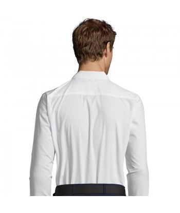 Chemise homme manches longues 65% polyester / 35% coton. Tissu popeline. Entretien facile. Pointe de col baleinée. Boutons ton sur ton. Poche côté gauche poitrine à angles arrondis. Empiècement dos double. Finition coutures rabattues. Poignet réglable à angles arrondis avec patte de manche capucin boutonnée. 2 boutons de rappel.